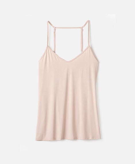 Resalte su belleza natural con esta camisola femenina en tono rubor con un favorecedor escote en V y detalle de doble tira en T. Sensualmente suave, la camisola está tejida con fibras de bambú diseñadas para adaptarse a la temperatura corporal y absorber la humedad de forma natural.