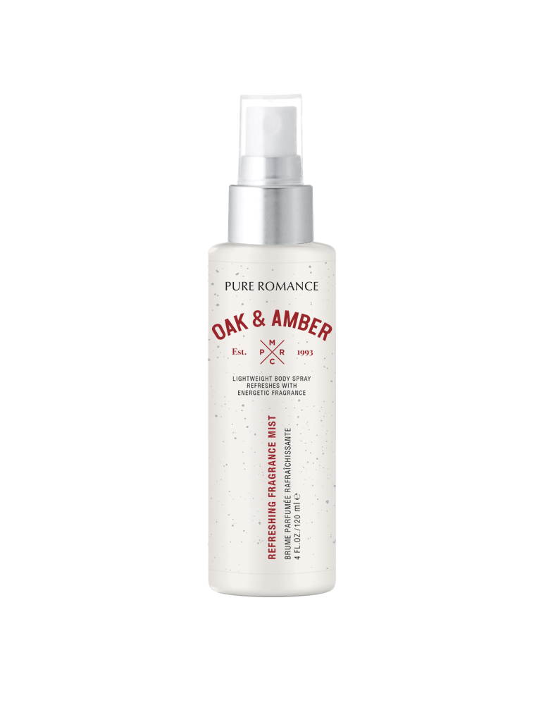 Refreshing Fragrance Mist es una fragancia corporal ligera con un aroma seductor que te hará sentir irresistible y rejuvenecida con solo rociarla. Este espray corporal para todo el cuerpo, formulado con aloe vera calmante, vitamina E y cáscara de limón energizante, es perfecto para darte un "beso" de fragancia durante todo el día. En un día caluroso, ¡refrigéralo para que te levantes de la cama! Oak & Amber captura la sensación del bourbon de primera calidad con roble carbonizado, mandarina salada y almizcle.
