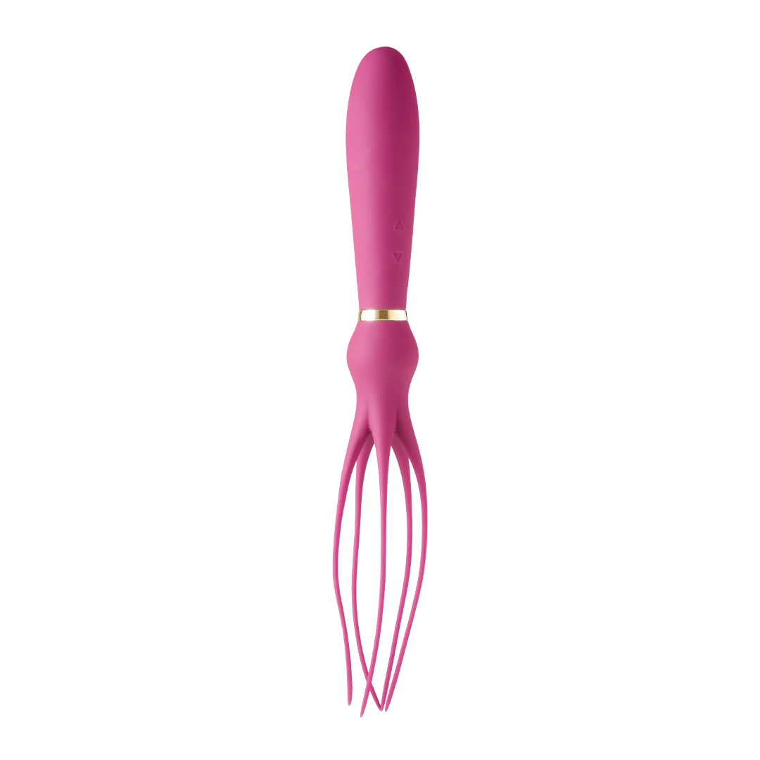 Give “work from home” a whole new meaning with this dual-ended, dual-motor vibrator. Let the vibrating shaft stimulate internally or hand it off to a partner for a little team effort. With vibration on, the silicone tassels can tease anywhere on the body. No matter what mood you’re in, grab this versatile toy and put in overtime on pleasure.